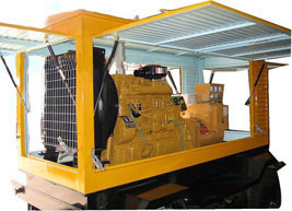莎车柴油发电机组/移动柴油发电机组设计独具创新,机动性高、重心低、制动安全、制造精良、外形美观。 莎车拖车车架采用槽梁焊接成框架结构,节点选择合理、强度高、刚性好;同时装有钢板弹簧悬架结构;拖车采用高度可调节插销式牵引架,适用于各种高度牵引车;采用圆形钢管焊接直通式车轴,结构紧凑,安全可靠;车架四角设有机械式支撑装置,配备惯性行车制动、驻车制动和脱离应急制动,确保机组在各种状况下的安全;车架前端设有支撑轮,具备承受机组垂直载荷的功能的同时还具备导向功能;整车配备转向和刹车指示灯,同时装有尾灯标准插头